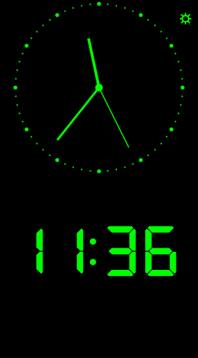 This is a simple, retro-style Night Clock. It will display the digital time in big, bold numbers (at digital mode); or big analog clock (in analog mode).