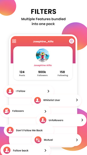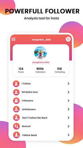 • عرض الذي لم يتبعك على Instagram والذين لا يتابعونك، وتتبع أتباع جدد وعرض المشجعين والمزيد