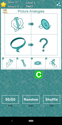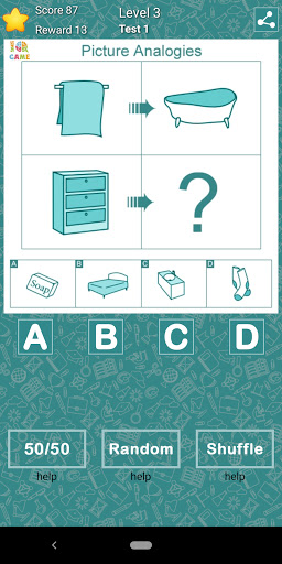 يتم توفير التلميحات والحلول لمعظم الأسئلة. بناء على أدائك، ستتلقى درجة IQ (حصة استخباراتية). يتم احتساب درجة IQ بناء على انحراف درجاتك إلى متوسط درجة المستخدمين الآخرين. يتم احتساب كل انحراف قياسي ك 15 وحدة من درجة الذكاء.