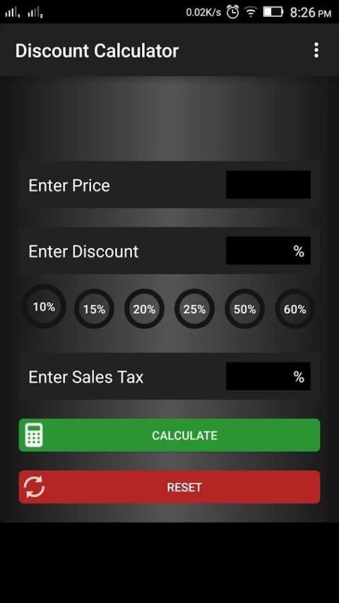 بسيطة بشكل لا يصدق وخصم سهل الاستخدام وآلة حاسبة المبيعات. أداة مريحة للغاية ليكون عند التسوق لشراء أي شيء.