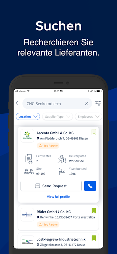 استخدم بحث الموفر المحسن أو الآن إنشاء استفساراتك مع تطبيق WLW الجديد للمشترين. مع هذا الإصدار المحمول من منصة B2B الخاصة بنا WLW ("من يسلم ماذا") ، يستمر الرقمنة في مجال الشراء.