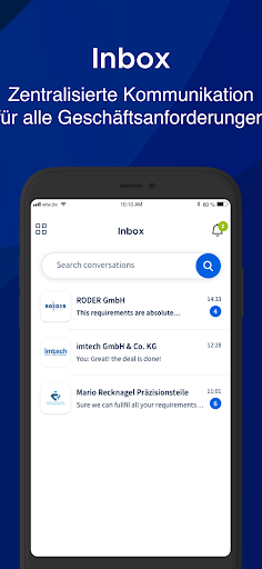تطبيق B2B هو أكثر من مجرد تطبيق مورد بسيط. يوفر البحث الدقيق والبسيط للمشترين في أي وقت مجموعة متنوعة من المعلومات والموثوقة حول الشركات ومحافظ منتجاتها ، بما في ذلك تفاصيل الاتصال الحالية والأسعار.