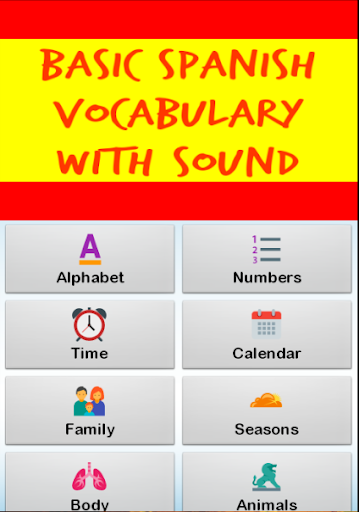 للدراسة باللغة الإسبانية وتعلم Vocab الإسبانية، هذا التطبيق [الأساس الأساسي] هو بالنسبة لك! نقدم لك قوائم المفردات الإسبانية الموضوع. لذلك، ستجد الكلمات و / أو تعبيرات أساسية عن لغة إسبانيا التي ستساعدك على زيادة معرفتك بسرعة وسهولة!