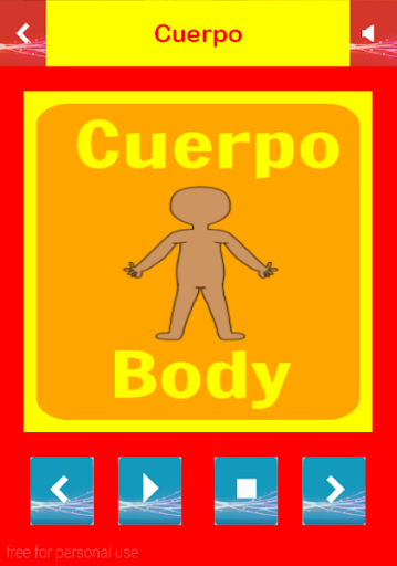 بالإضافة إلى قوائم الكلمات باللغة الإسبانية والترجمة، ترافق كل صفحة نص #spanish to الإنجليزية # والصورة والصوت الإنسان يمنحك معلومات حول هذا الموضوع.
