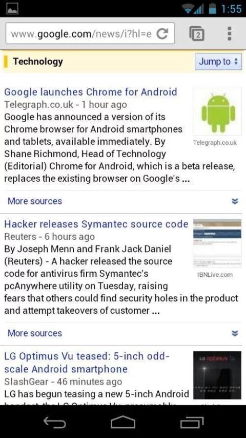 ملامح متصفح Android: