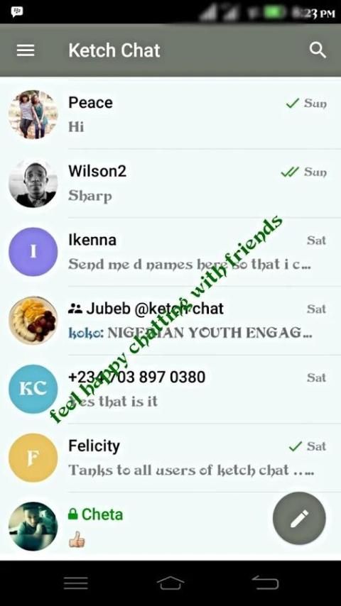 حان وقت لتحديث التطبيقات الموبايل 10,000+ مستحدمين يحملون Ketch Messenger. احدث الاصدار مجانا كل أسبوع في لو لا يعجبك الاصدار القديم فيمكنك تقوم بتحديثه في اي الوقت..9Apps هذه التطبيق الحلوووه تصدر في 2016-09-23 انه تطبيق واسع الانتشار في المنطقة العربية..