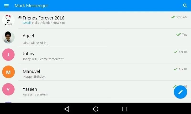 حان وقت لتحديث التطبيقات الموبايل 10,000+ مستحدمين يحملون Mark Messenger احدث الاصدار مجانا كل أسبوع في مستخدمي التطبيق يقعون في حبه بسبب جودته العالية وسرعته المدهشة..9Apps هذه التطبيق الحلوووه تصدر في 2016-04-15 يمكنك تحمله مجانا في 9Apps..