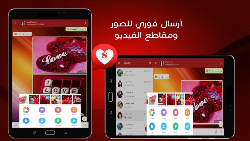 مع سكوب، ونحن نريد لإعادة تعريف ما يمكن تحقيقه باستخدام برنامج الرسائل عن طريق الهاتف. يمكنك سكوب إرسال مقاطع فيديو يصل حجمها إلى 1 جيجا بايت، وإنشاء مجموعات الدردشة، وعدد من أعضاء لديها ما يصل إلى 100 عضوا، يمكنك أيضا إرسال العديد من الصور من خلال البحث على شبكة الإنترنت في وقت واحد، سكوب يمكنك تحويل أي وسيلة إعلامية تظهر على الفور حتى قبل أن تصل لجهازك تماما.
