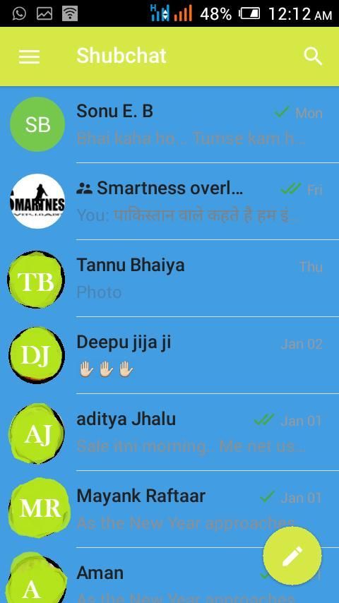 Believe it or not! 10,000+ users downloaded ShubChat Messenger latest version on 9Apps for free every week! It is simply to learn how to use it. This hot app was released on 2016-01-23. 9Apps has thousands of apps and updated daily! 9Apps मुफ्त में एंड्रॉयड ऐप्स एपीके डाउनलोड करता है. 10,000+ युसर्ज़ ने हर हफ्ते मुफ्त में 9apps पर ShubChat Messenger नया वर्ज़न डाउनलोड किया.जब आप क्लिक करेंगे, तो ऐप डाउनलोड होना शुरू हो जाएगी और इंतज़ार करेगी इंस्टालेशन का फिर आप इस्तेमाल कर सकेंगे. यह हॉट मोबाइल ऐप्स 2016-01-23 पर जारी किया गया था. किसी तरह ये ऐप काफी समय से चर्चित है.