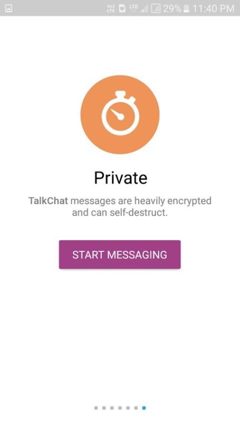 للراغبين في أقصى قدر من الخصوصية، TalkChat رسول تقدم دردشات السرية. يمكن برمجتها رسائل الدردشة سرية لتدمير الذاتي تلقائيا من كل الأجهزة المشاركة. بهذه الطريقة يمكنك أن ترسل جميع أنواع تختفي المحتوى - الرسائل والصور والفيديو وحتى الملفات. دردشات سرية تستخدم نهاية إلى نهاية التشفير لضمان أن الرسالة لا يمكن إلا أن تقرأ من قبل المرسل إليه المقصود.