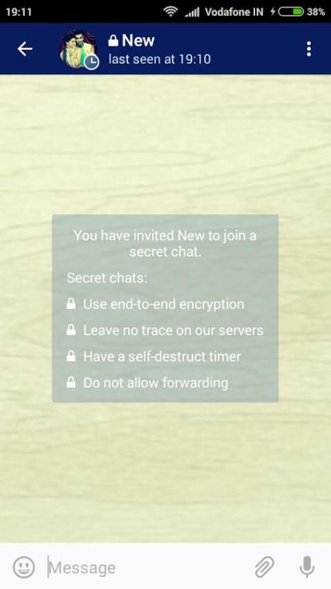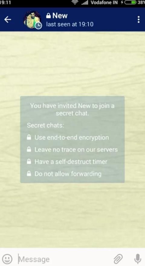 • Secret Chats: Use end-to-end encryption, Leave no trace on our servers, Have a self-destruct timer, Do not allow forwarding.