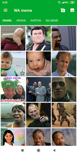 Sticker Meme For Whatsapp atau didalam aplikasinya bernama WA meme adalah sebuah aplikasi hiburan untuk kirim di Chat whatsapp. Adapun gambar didalamnya bisa sobat edit sendiri atau langsung dikirim ke Chat whatsapp. WA meme ini sangat lengkap!.