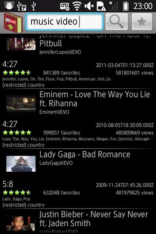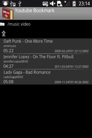 LogInless youtube bookmarks classified as you likeThis app simply helps you bookmark your favorite Youtube videos with classified folders as you like, and that without logging in.search Just write your keyword and click a button. Bookmark Long tap on one of the search results invokes a dialog that asks you quot;Where You would likequot; to put the bookmark of the video. Classification and Folders You can make almost as many folders as you like, and make your classification tree as much complicated as you like. By name, genre, era, theme, region, or whatever. With categorization facility, you can more easily access any video in your bookmark tree.version 1.6 orientation changed from landscape to portrait. layout change.version 1.5 quot;Sharequot; menu is added.On clicking an item in your bookmarks database a dialog will be invoked asking quot;watchquot; or quot;sharequot;. layout change.version 1.4 Supported Quick Search Box.Please set up this application in your android search setting menu. Supported receive movie URLs from YouTube application.You can use other application that can quot;sharequot; URLs, in order to bookmark in this application.