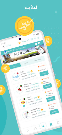 المشاركة في الفعاليات: يتيح لك تطبيقنا المشاركة في فعاليات المشي المحلية أو العالمية، حيث يمكنك المنافسة مع المشاركين الآخرين وتحويل المشي إلى تجربة ممتعة وربح جوائز مثيرة.