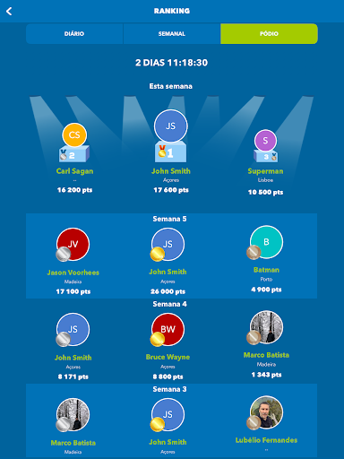 قم بزيارة التصنيف يوميًا والقتال من أجل مكان على المنصة الأسبوعية ، والفوز بالميدالية وإظهار الجميعأنت الأفضل!يتم تجديد هذه الاشتراكات تلقائيًا وتمنحك ميزات مفيدة للغاية للحصول على أفضل الأدوات للتحضير لامتحان الكود في أي فئة!