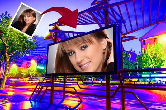 اجعلوا صورتكم على اللوحات الاعلانية في الشوارع والبنايات ادمج صورتك على اللوحات الإعلانية! دع الجميع يراك ويدرك كم أنت رائع عن طريق وضع أفضل صورك في "اطار لوحة اعلانات". رائع من شأنه أن يجعل كل ما يبدو وكأنه مشهور وذو قيمة
