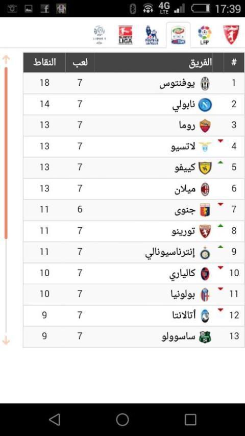 ترتيب الفرق البطولات عالمية classement live score match lfp 1ere League serie A champion's league 2016-2017 ITALIE SERIE A la ligue france la liga lfp spain champion's europ live socure bundous liga germane premier league englange resultat des classement تطبيق سهل الاستعمال