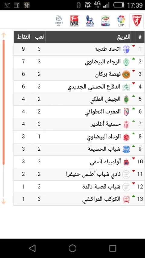 تطبيق باللغة العربية ترتيب الفرق classement live score match lfp 1er League serie a champion's league