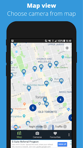 تطبيق بسيط للحصول على عرض سريع لما يحدث في شوارع تورونتو من خلال صور من الكاميرات في جميع أنحاء المدينة، مما يوفر عرضا محدثا للحركة في المواقع الرئيسية.