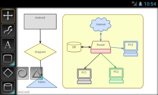 Diagram editor for Android phones and tablets. Create diagrams, uml-like flowcharts, mind-maps and sketches quickly and easily.