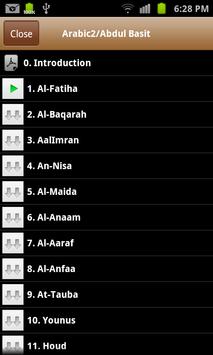 e. When you'll click on Qari tab like Abdul basit, you'll see again the 114 Surah list. Same procedure will be used to see the PDF. Thers is only one change here. You'll see Double Arrow button. It means here you can download PDF Audio.