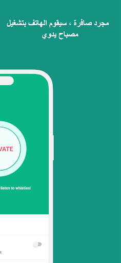 تمنحك صافرة المصباح على التطبيق طريقة سريعة لتشغيل المصباح اليدوي. ما عليك سوى تنشيط التطبيق وسيكتشف التطبيق أصوات الصفير ويتفاعل مع صفيرك. سوف يتعرف مصباح يدوي من صَفَّارَة على صوت الصافرة ويقوم بتشغيل المصباح اليدوي.