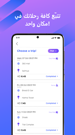 - الرحلات: إحصل على رحلة فورية أينما كنت ومتى احتجت إلى ذلك.