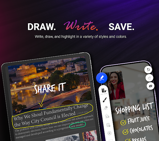 بالنسبة للعديد من الأشياء التي تحتاجها إلى وصول سريع لكتابة شيء ما ، تحتاج إلى البحث عن قلم & amp ؛ورق.أو تحتاج إلى البحث عن تطبيق لكتابة ملاحظة سريعة.الآن مع & quot ؛ draw & amp ؛اكتب على أي شاشة & quot ؛يساعدك بسرعة في كتابة أي شيء على أي شاشة ربما هاتفك.Quick Quick Down a Phource Onder Ondere Onder Onderty Oner أو أي شيء مهم حفظه كقطة شاشة.أيضًا أثناء استخدام الكاميرا الحية لهاتفك ، يمكنك رسمها على الشاشة وإضافة ملصقات إبداعية لجعل الصور الحية ممتعة.