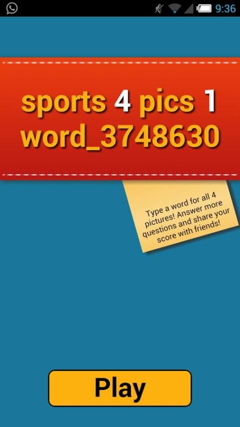 هذا هو 4 صورة 1 كلمة لعبة لعشاق الرياضة! اختبر معلوماتك عن الرياضة! ومسابقة حول مختلف الألعاب الرياضية التي لديها مستويات سهلة وصعبة. هل تجعل من دون شراء أي خطابات؟ نعم فعلا؟ ثم كنت جيدة جدا!