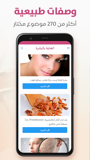 هذا التطبيق مثالي للنساء المهتمات بالعناية بالبشرة يحتوى على العديد من المقالات و الوصفات الطبيعية المجربة للعناية بالبشرة, هنا بعض من مواضيع التطبيق: