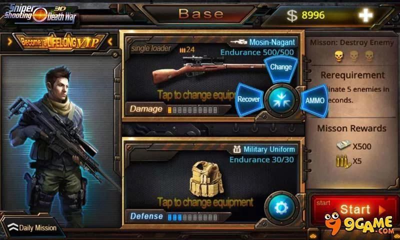 →Sniper Rifle: 10 different kinds of sniper rifle with different degrees damage