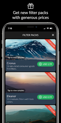 عرض مزيد من المرشحات من خلال عمليات الشراء داخل التطبيق بسعر بأسعار معقولة وسخية.