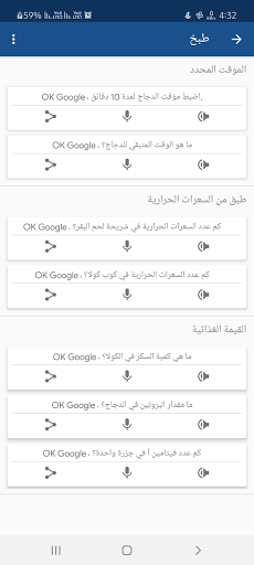 يوفر هذا التطبيق قائمة كاملة بالأوامر الصوتية لـ Google Assistant ومكبرات الصوت الذكية Google Home التي يتم تنشيطها بعبارة خاصة Ok Google أو Hey Google. يتم تصنيف جميع الأوامر الصوتية.