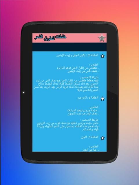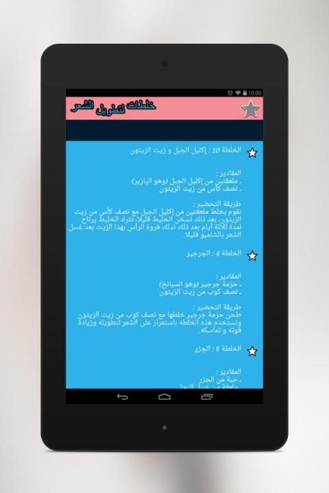 نقدم لك سيدتي تطبيق رائع يحتوي على 10 وصفات و خلطات لتطويل الشعر و تكثيفه، و كلها مجربة و مضونة 100% يكفي أن تختاري أنسب الوصفات إليك و أسهلها و التي تتوفرين على إمكانياتها.