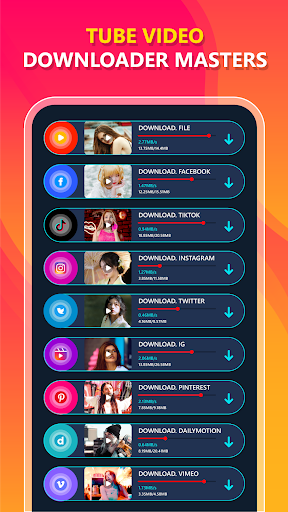 Master Tube Video Download هو أفضل تنزيل فيديو لتنزيل مقاطع فيديو وسائط اجتماعية مجانية بجودة عالية الدقة.يقوم تنزيل الفيديو المجاني باكتشاف مقاطع الفيديو وتنشيط زر التنزيل الذي يمكنك تنزيله على جميع مقاطع الفيديو بنقرة واحدة وتنزيلها ستكون سريعة للغاية.يحتوي تطبيق تنزيل الفيديو على مدير تنزيل قوي يتيح لك الإيقاف المؤقت واستئناف التنزيلات.ستكون سرعة التنزيل الخاصة بك بسرعة فائقة مع تنزيل mutlithread.جميع تنزيل الفيديو المجاني لمعاينة الفيديو أولاً ، قم بتنزيله سريعًا وتشغيله في وضع عدم الاتصال.