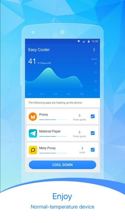 من السهل تبريد تبريد ماستر - مراقبة درجة الحرارة والتطبيق المسيطر أن يكتشف ويغلق الموارد الثقيل تستهلك التطبيقات لتهدئة درجة حرارة الهاتف.