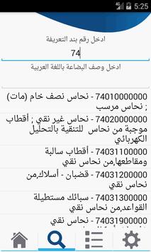 - يمكن البحث عن بند تعريفة محدد عن طريق جزء من رقم البند أو جزء من وصف البند.
