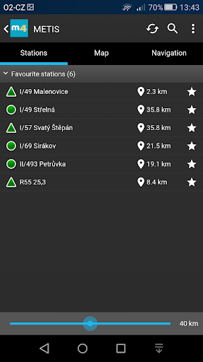 - Based on the tracking of user the application provides basic data from the closest weather station, with a preference for stations in the direction of movement
