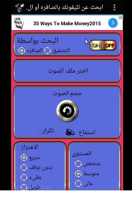 ★ ملحوظة: استدعاء الجوال بـ صفارة فى الاماكن التى بها ضوضاء تحتاج للتصفير بشكل اقوى , تطبيق البحث عن الجوال او الهاتف يعمل فى الخلفية وهذا قد يستهلك البطارية