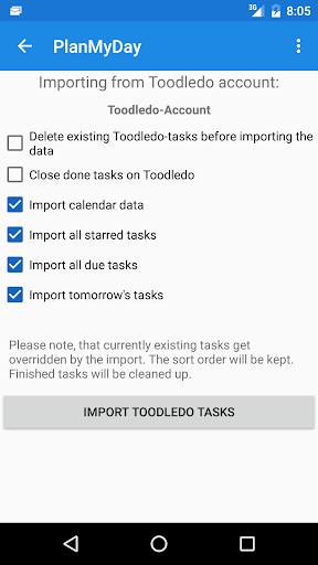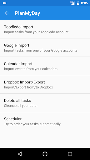 Activities can be imported from Google tasks and/or from your Toodledo account, or can be entered manually.