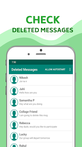 To view deleted messages whatsapp, open this app and allow notification permission. Ask your friend to send you a message and then again ask him to deleted that message. Now, open this app and you can see your friend's name on the home screen.