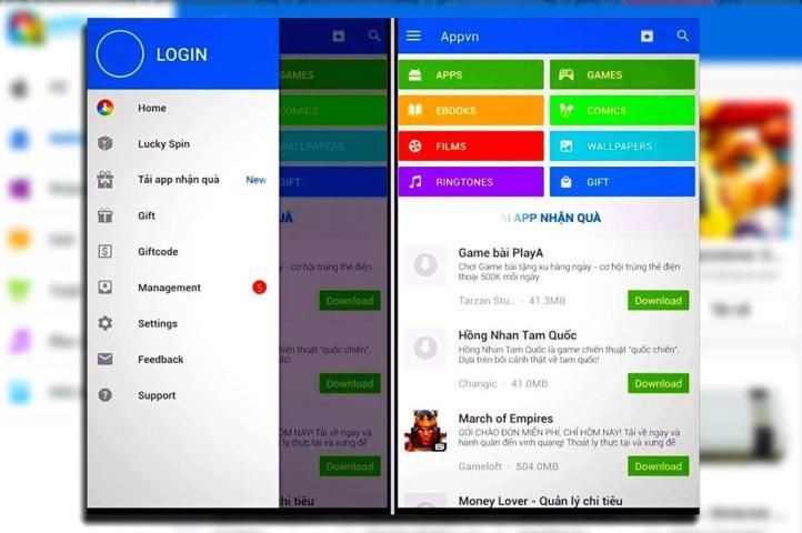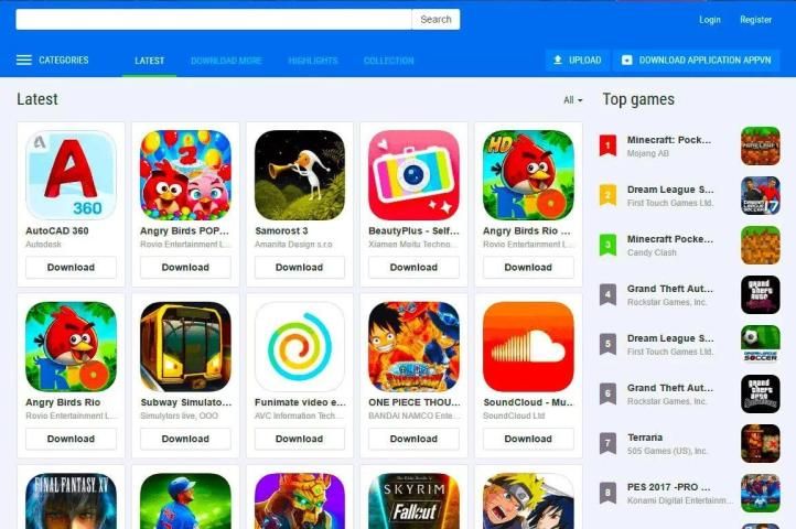 Appvn زائد سوق Appstorevn 8 تبدو وكأنها المتجر الاستعراض، مع جميع وصلات التحميل من GP.