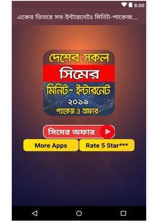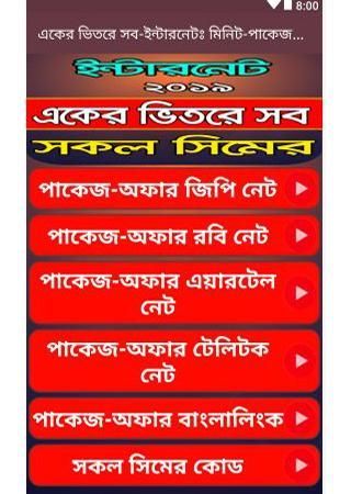 আমরা সকল সিমের প্যাকেজ অফার নিয়ে *একের ভিতর সব* আপটি সাজিয়েছি ।অনেকে কষ্ট করে নেট ঘেঁটে সব সময় সব ইনফরমেশন পায় না।তাই আমরা চেষ্টা করেছি যাতে করে আপনি এই আপটির মাধ্যমে # ইন্টারনেট প্যাকেজ জিপি gp সব রকম # নেট অফার প্যাকেজ পেতে পারেন।এখানে আপনি # ইন্টারনেট প্যাকেজ রবি robi,# ইন্টারনেট প্যাকেজ অফার এয়ারটেল airtel তারপর দেশের সিম sim ইন্টারনেট অফার প্যাকেজ টেলিটক telitalkএবং সকল নেট অফার প্যাকেজ বাংলালিংকের banglalink সাথে পাবেন ।খুব অল্প সময়ে একটি আপের মাধ্যমে আপনি পেয়ে যাচ্ছেন সকল সিমের ইন্টারনেট ,মিনিট এস এম এস ও অফার গুলো # minutes,sms,internet । আপনি পাচ্ছেন সকল সিমের দরকারি # সকল কোড sim code যে সকল কোড সাধারণত আপনার মনে থাকে নাহ ,খুব সহজেই দরকারের সময় আপনি সেটা এই আপটি থেকে পেয়ে যাবেন