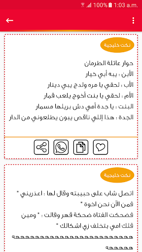 التطبيق يحتوي على نكت مضحكه جدا و نكت مضحكه بدون نت و نكت للكبار فقط ونكت منوعة ونكت بنات ونكت خليجية ونكت فلسطينية ونكت لبانينة ونكت سورية والكثير من الاقسام المميزة.