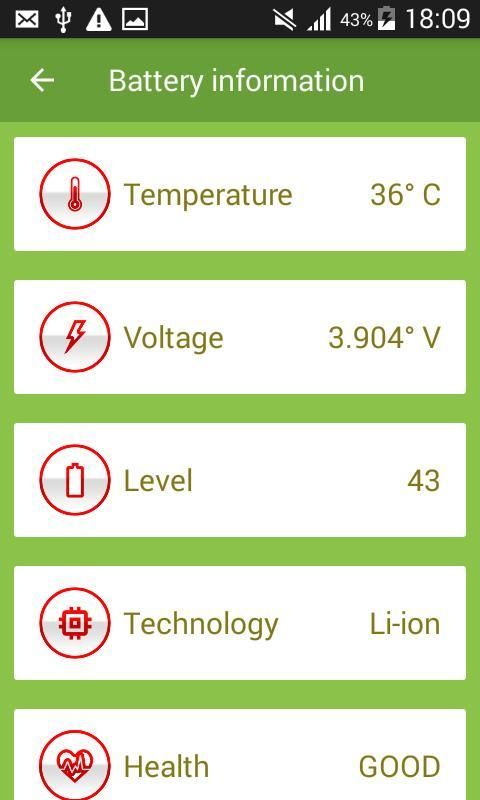 ★★★ معلومات البطارية تفصيلية داخل الشاشة الرئيسية للبرنامج. سوف تكون قادرة على معرفة النسبة المئوية للطاقة البطارية وكذلك درجة الحرارة في C °، والجهد من البطارية وأخيرا المستوى.