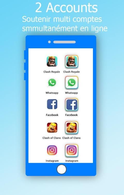 • يتم دعم تقريبا جميع تطبيقات العد المزدوج للسوبر حساب متعدد استنساخ. البيانات من حساب 2 أبدا تتداخل مع بعضها البعض بعد استنساخ.