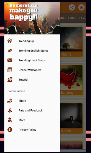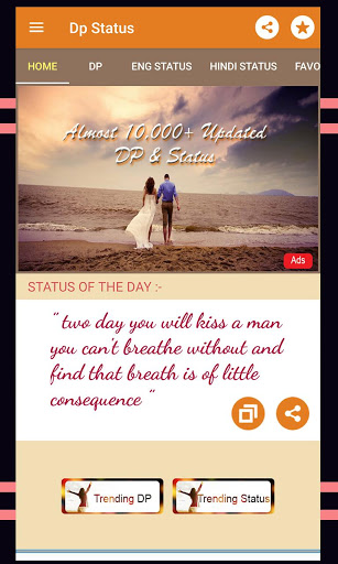 It has Best Status and DP collection for your social accounts like WhatsApp, Facebook, and Others. Set your DP (Display Picture) and Status according to your emotion and mood.