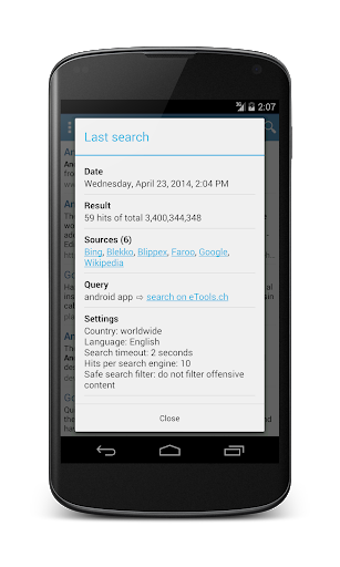 يعتمد هذا التطبيق على محرك MetAsearch Etools.ch (https: // www .ETOOLS.CH) التي تعمل بموجب حلول البحث الفيدروجي الخاص بنا إلى SEATSeMetasearch