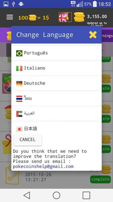 الآن كسب بدل الحرة مع التطبيق مكافأة الأكثر فعالية، "الحصول على pokecoins"!
