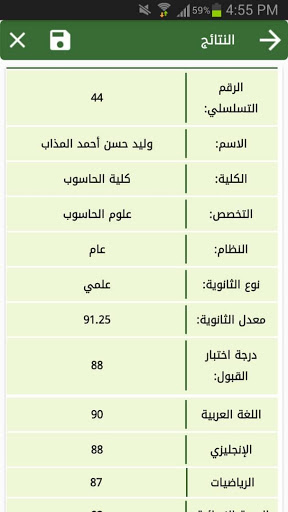 كما يمكن الإستعلام عن نتيجة اختبار القبول من التطبيق